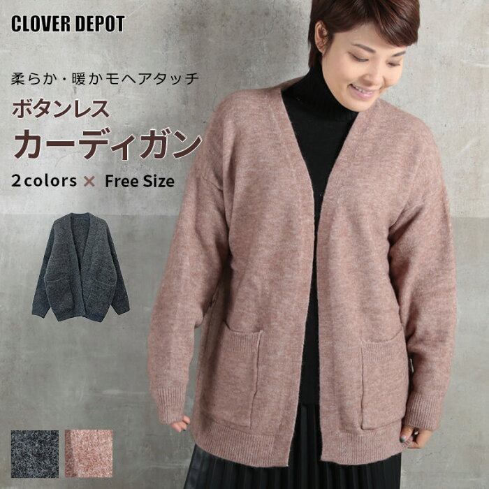 即納 カーディガン レディース 秋冬 厚手 モヘア風 もこもこ モヘアライク トップス ニット ポケット付き 羽織り あったか ボタンなし ボタンレス ニットカーディガン 長袖 ゆったり 冬 シンプル デザイン vネック 厚手 送料無料