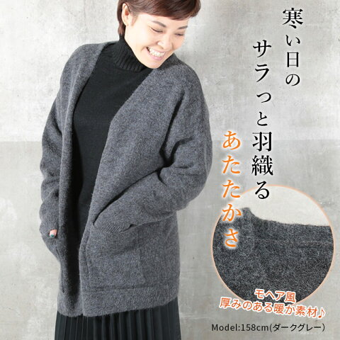 秋物 冬物 秋冬物 秋冬 秋 冬 カーディガン アウター 温かい あったか モヘアタッチ モカ ダークグレー Mocha Darkgray 茶 おしゃれ カジュアル 体型カバー 長袖 萌え袖 大きめボタン ざっくり 起毛 モヘア ニットカーディガン ポケット付き ボタンレス 秋冬トレンド 大人カジュアル 切替し Vネック Vライン オーバーサイズ お尻かくし お腹かくし お腹カバー お尻カバー ふわふわ リブ 伸縮素材 コーデしやすい きれいめ 大人きれい 大人かわいい 可愛い モヘアライク な 起毛 柔らか 暖かい 秋用 冬用 アイテム ちくちく チクチクしない 綿 入り 柔らか 厚手 素材が 寒い日 も 暖かく身体を包んでくれます。