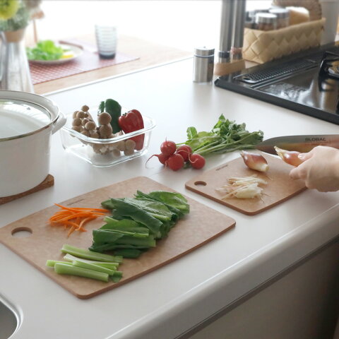 薄くて軽いから扱いやすい ぶ厚いまな板は安定感がある反面、重く取り出したり洗ったりといった際ストレスを感じる事もありますが、エピキュリアンは厚手の物と比べると重量も軽く、6mmという厚さはつかみやすく取り回しの際女性でも負担になりにくい。