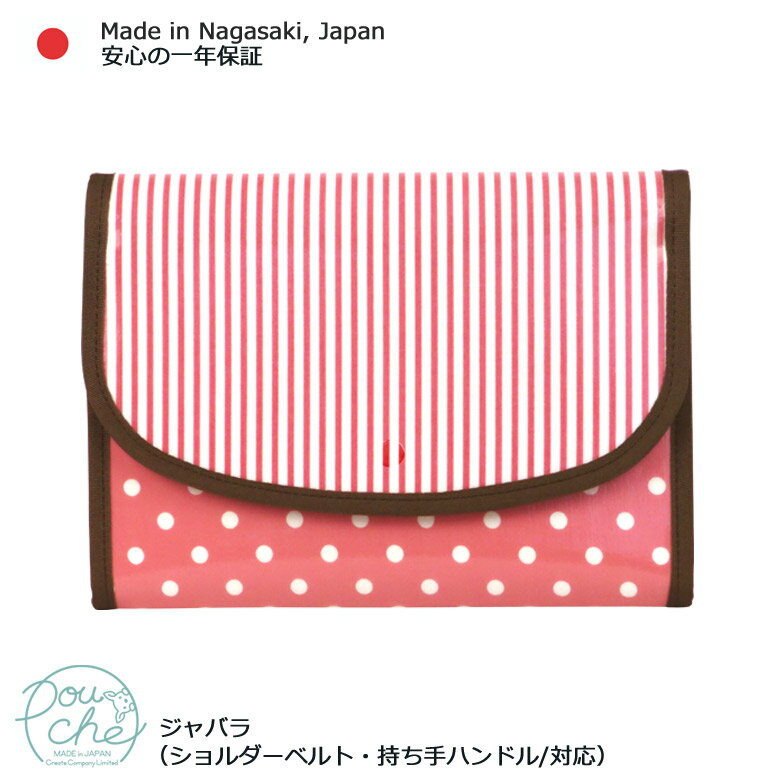 母子手帳ケース ジャバラ ドットストライプピンク 撥水防汚生地 2人分 おしゃれ 二人用 3人分 ブランド Pouche ポーチェ