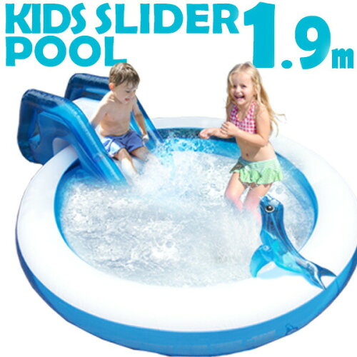 プール ビニールプール 滑り台 アシカちゃん シャワー付 1.9m 大型 スライダー プール 幅195cm×奥行167cm×高さ25cm 電動ポンプ 水遊び おもちゃ すべり台 屋外 ベビープール ファミリープール 家庭用プール 子供用プール 1年保証 ●[送料無料][あす楽]