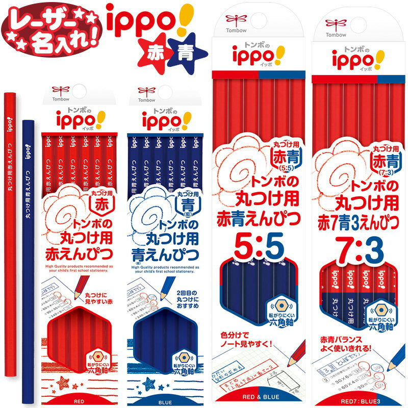 トンボ鉛筆 イッポ ippo 丸つけ用 赤えんぴつ赤青えんぴつ 青えんぴつ 5:5 7:3 六角軸 12本入り【レーザー名入れ】 【6ダースまでネコポスもOK!】名入れ 鉛筆 名前入り ネーム入り卒園 入学 記念品 贈物 プレゼント 小学生 赤青 l_c