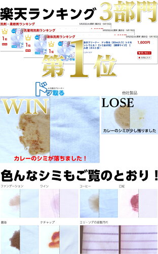 【洗剤・柔軟剤】 【洗濯用洗剤】 【液体洗剤】 (2014.5.19) 【配送日指定不可】 【代引不可】 【納品書なし】 【メール便(ポスト投函)】 クリーニング店でも落ちなかったそのシミが ▼▼▼ 生地を傷めず色あせもなく激オチ しかもクリーニング店よりも経済的! お近くのクリーニング店と比べてください! こんなシミに大活躍! カレー/ファンデーション/ワイン/コーヒー/口紅/しょう油/ケチャップ/エリ・ソデの皮脂汚れ ◆用途:繊維製品に付着したシミの除去 ◆内容成分:過酸化水素水・炭酸水素ナトリウム・乳化剤・酵素・キレート剤・防腐剤 ◆液性:弱アルカリ性 ◆製造国:日本製